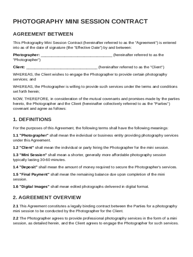 What is Photography Mini Session Contract Template