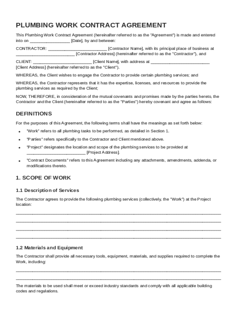 Plumbing Work Contract Template Guide