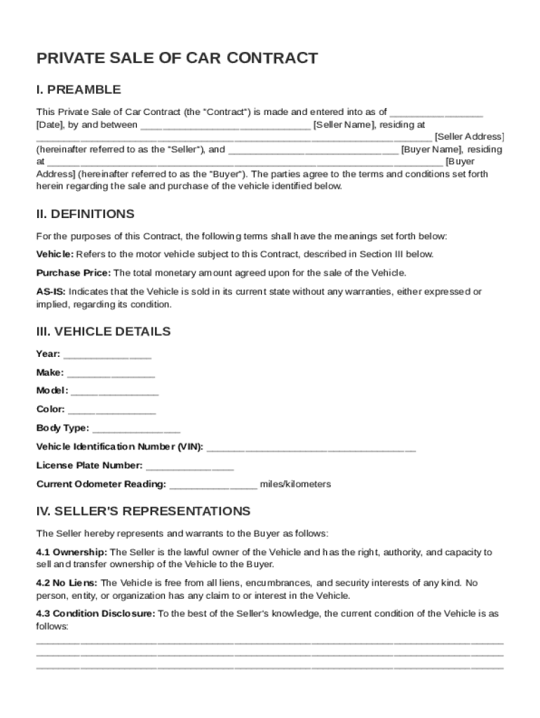 What is Private Sale Of Car Contract Template
