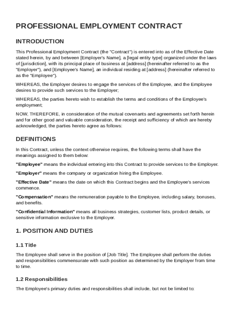 What is Professional Employment Contract Template