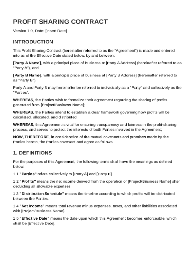 A Profit Share Contract Template is a legal document outlining the terms and conditions under which profits will be shared among parties involved in a business venture.