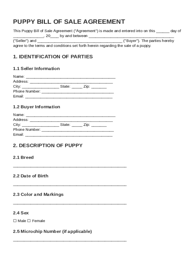What is Puppy Bill Of Sale Contract Template