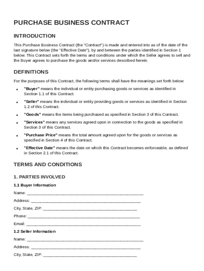 Comprehensive Guide to the Purchase Business Contract Template Form