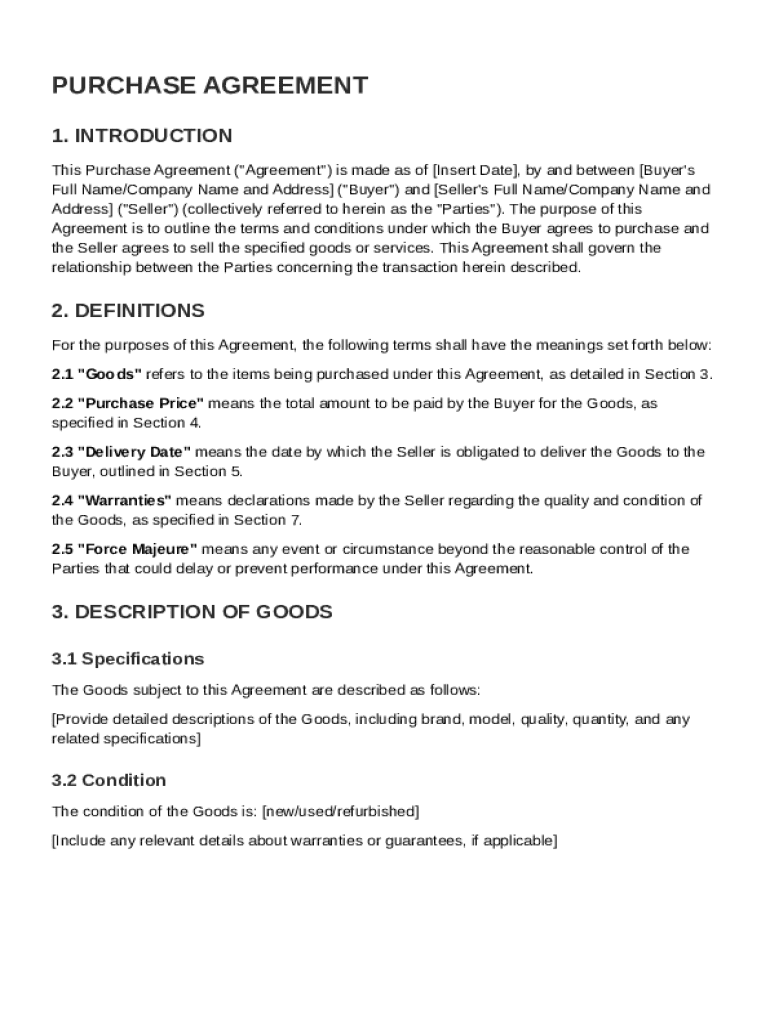 A Purchase Contract Template is a standardized document outlining the terms and conditions of a sale between a buyer and seller.