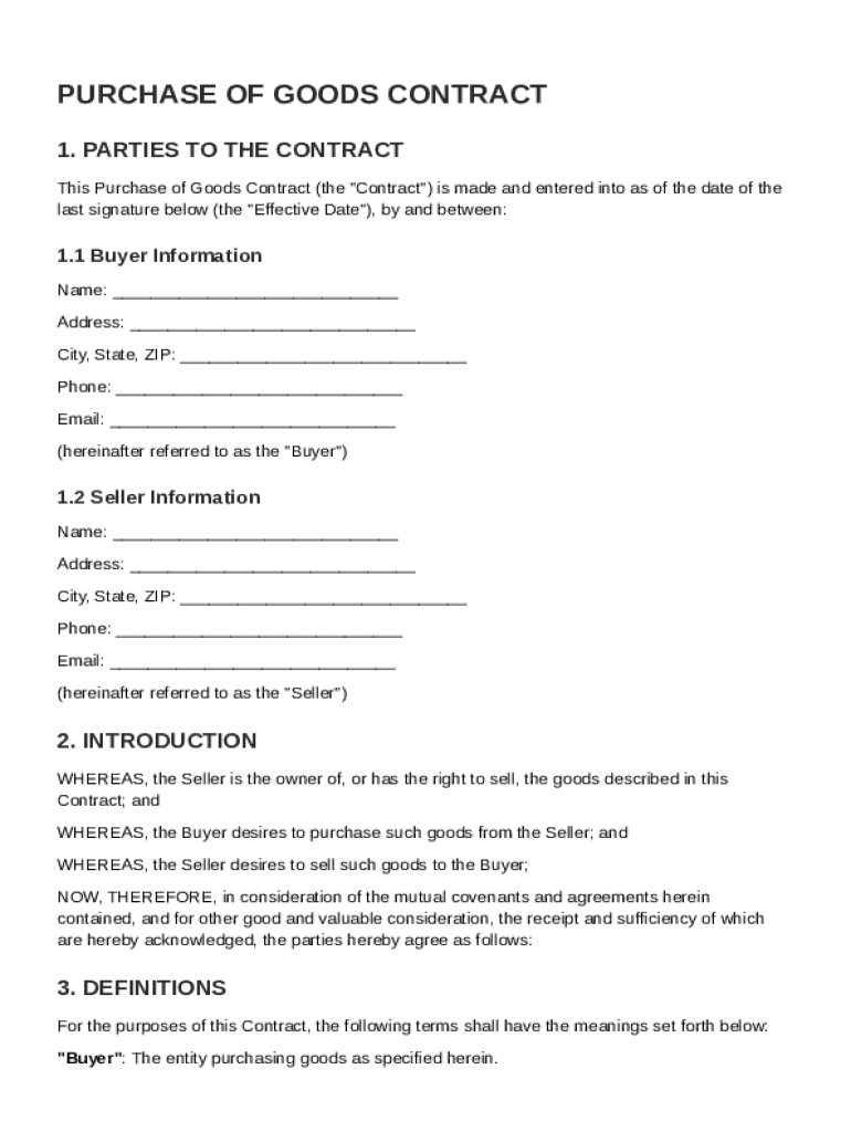A Purchase of Goods Contract Template is essential for formalizing transactions between buyers and sellers, ensuring both parties are aware of their obligations and rights. This guide will take you through a comprehensive understanding of this template, how to fill it out correctly, and tips to utilize it effectively.