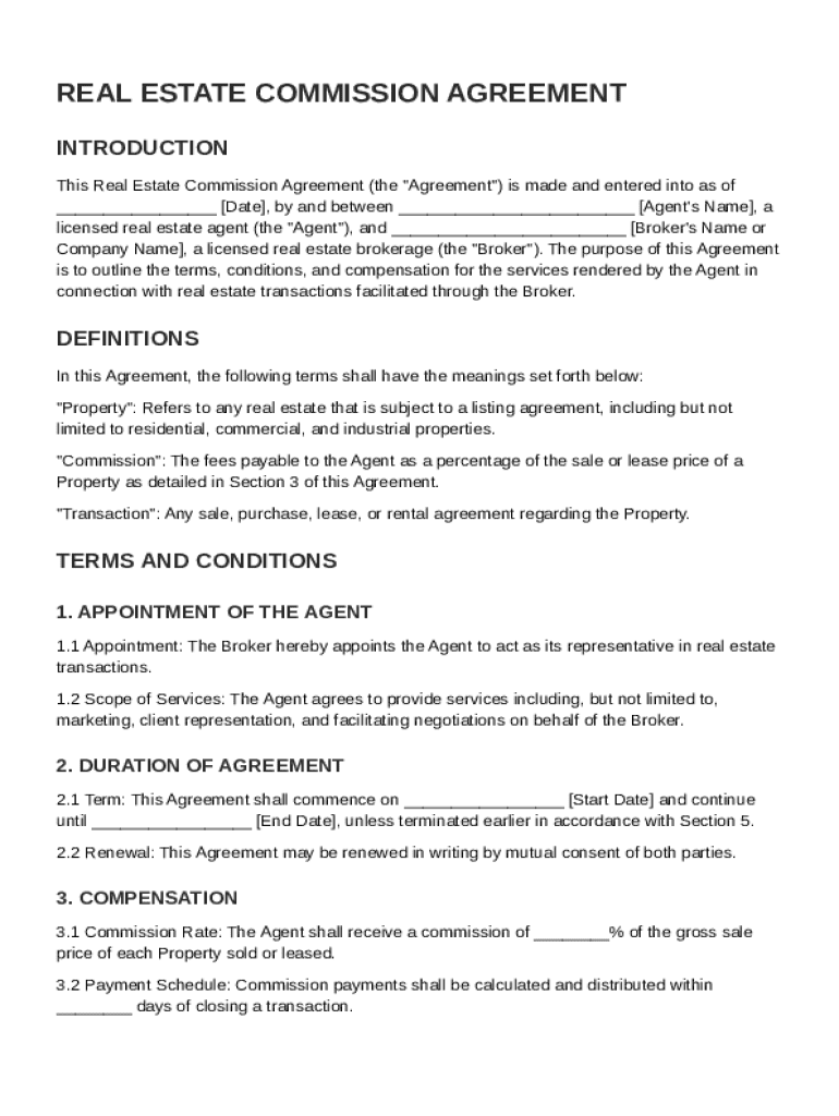 A Real Estate Commission Agreement is a contract that outlines the terms between a real estate agent and a property owner or broker. This agreement defines responsibilities and expectations, ensuring clarity and professionalism in real estate transactions. Knowledge of these terms is crucial for agents to navigate their duties effectively.