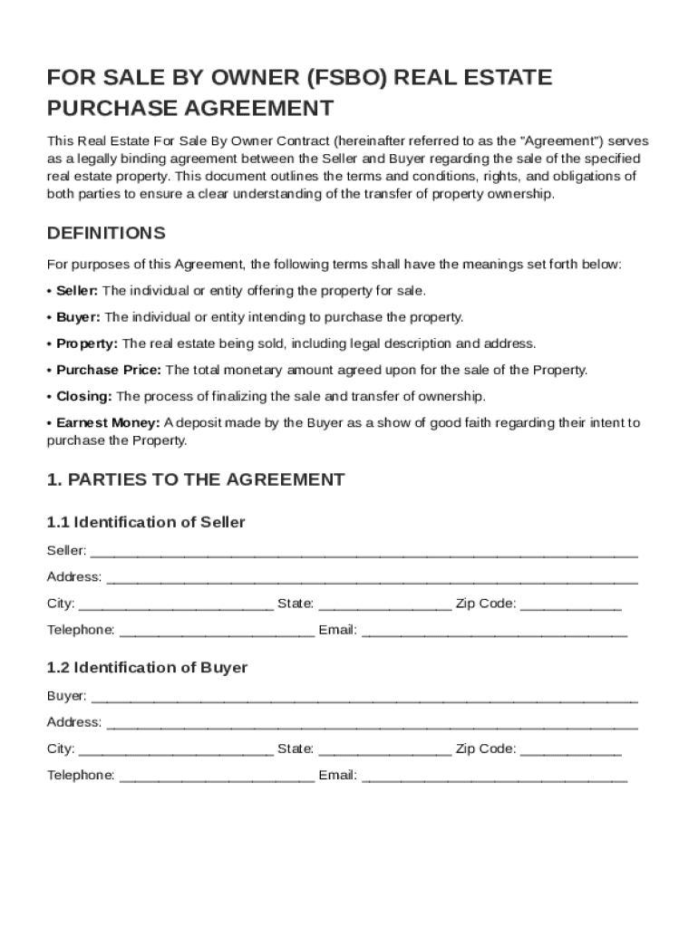 Comprehensive Guide to Real Estate For Sale By Owner Contract Template