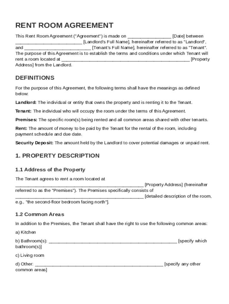 A Rent Room Contract Template is a legal document outlining the terms and conditions between a landlord and tenant for renting a room.