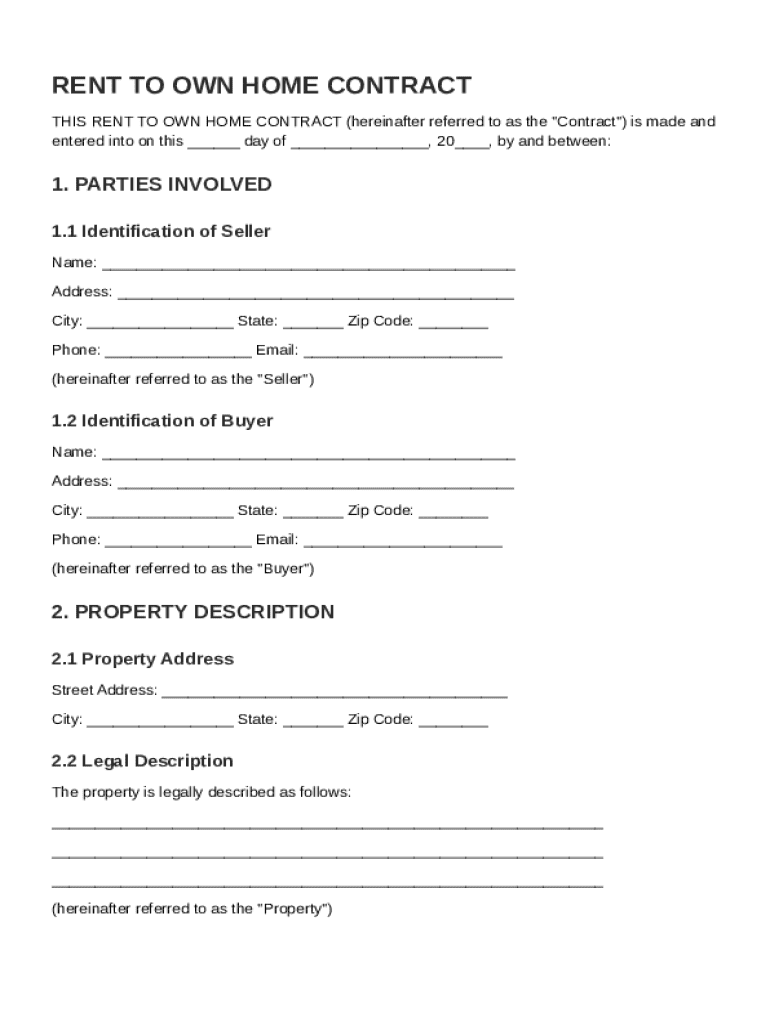 Accurate property identification is critical in a Rent To Own Home Contract. Missing or incorrect details can lead to disputes or legal challenges.