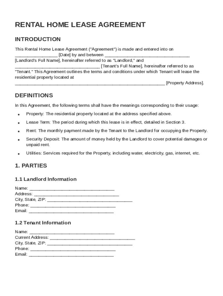 The structure of a rental home lease agreement is essential for clarity and legal safety. It typically includes multiple sections that serve specific purposes.