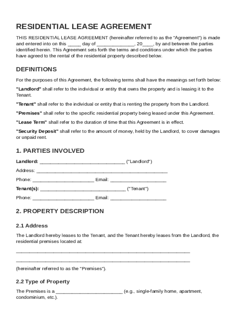 A residential lease agreement is a legally binding contract between a landlord and a tenant that outlines the terms of renting a property. Such agreements provide clarity on the rights and responsibilities of each party, which is crucial to maintaining a harmonious rental relationship.