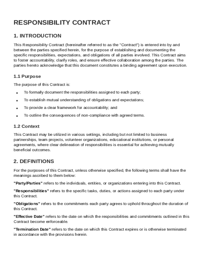 Responsibility Contract Template: Comprehensive Guide to Filling Out and Managing Your Agreement
