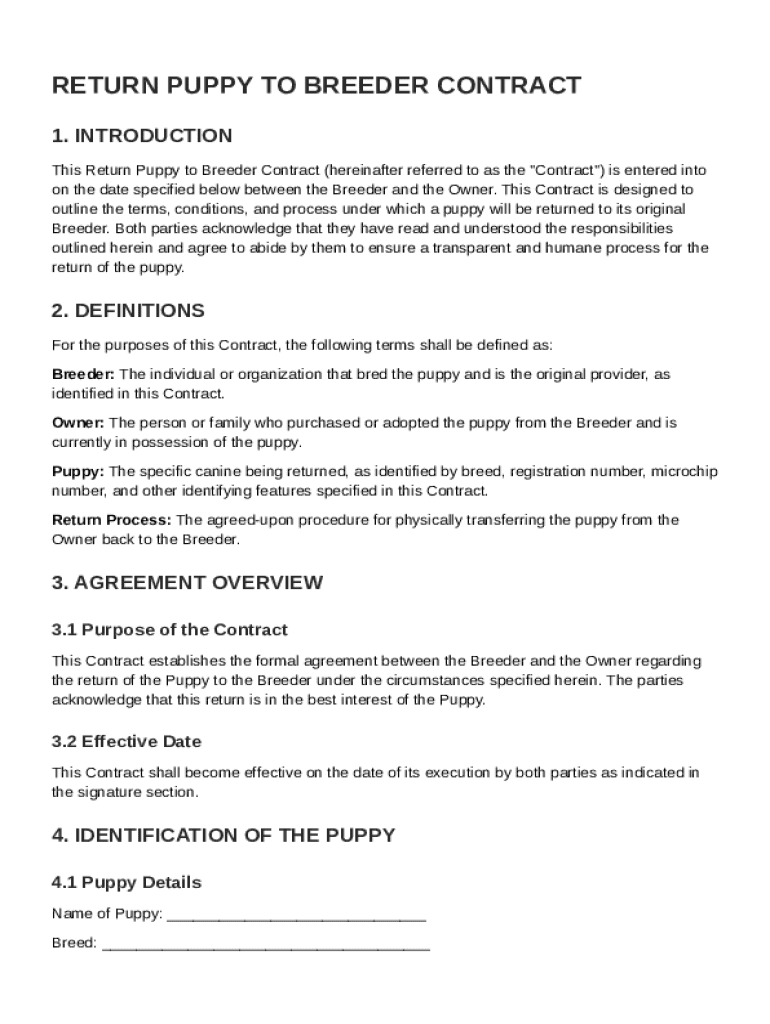This section will give you a deeper understanding of the Return Puppy To Breeder Contract Template, its purpose, and its importance.