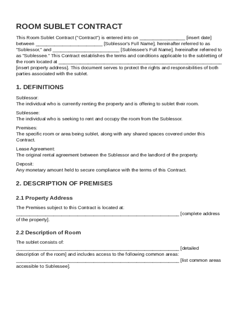 Understanding common terms in a room sublet contract can demystify the legal jargon often associated with rental agreements. Being knowledgeable about these terms will empower you when drafting or reviewing contracts.
