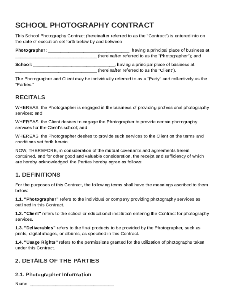 This section will provide you with essential information regarding the School Photography Contract Template, its purpose, and its key components.