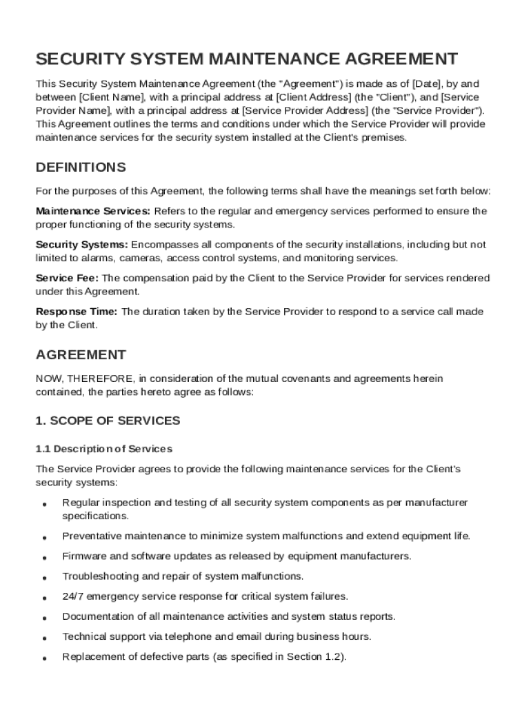 Security System Maintenance Contract Template Guide