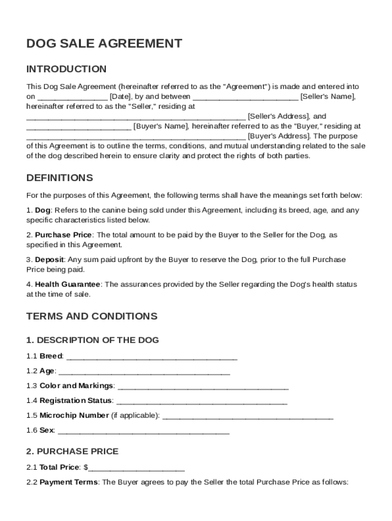 Sell Dog Contract Template: Comprehensive Guide to Document Creation
