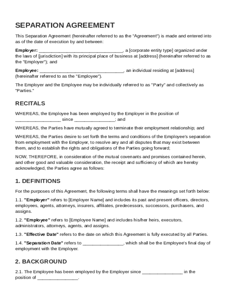 Recitals provide context and background information regarding the separation, shedding light on the reasons behind the agreement's necessity.