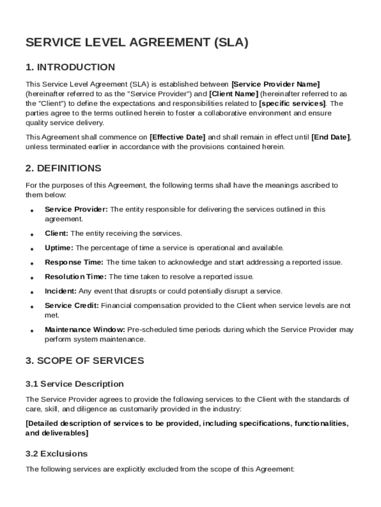 Defining what qualifies as an incident helps determine when the SLA terms are invoked and can enhance communication.