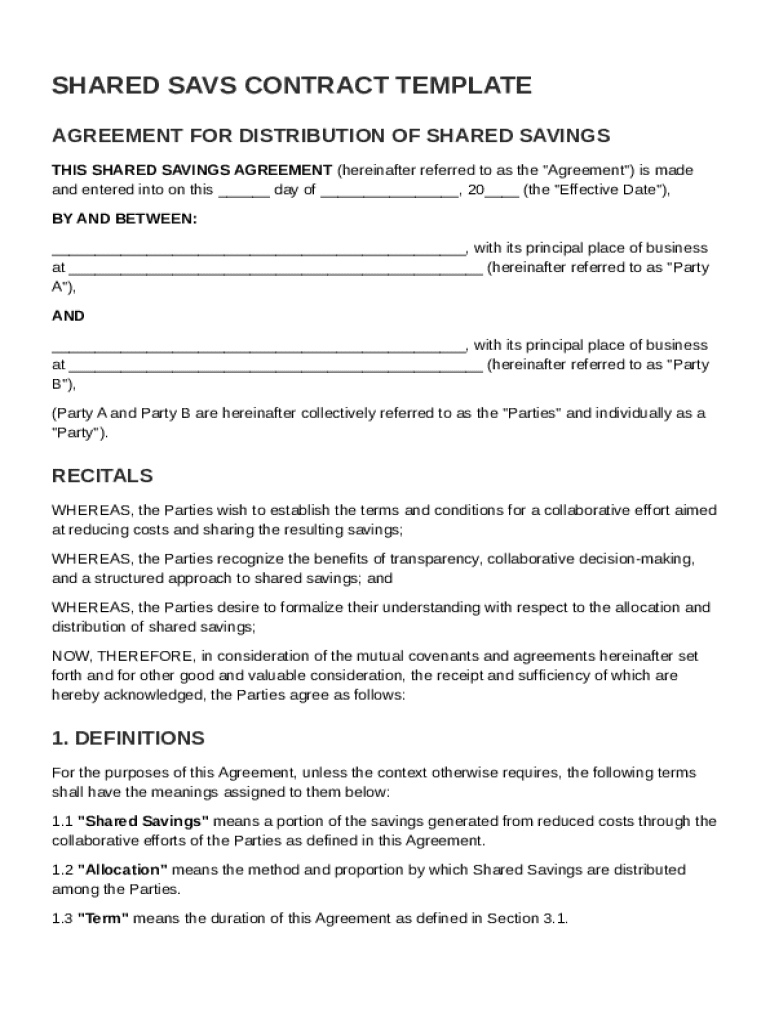 Filling out a Shared Savs Contract Template form requires careful attention to detail and an understanding of shared savings concepts. This guide provides comprehensive insights and instructions for individuals and teams looking to create effective Shared Savings Agreements.