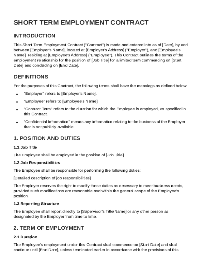 This guide will help you navigate the intricacies of creating a Short Term Employment Contract Template form, ensuring you understand the purpose, structure, and best practices.