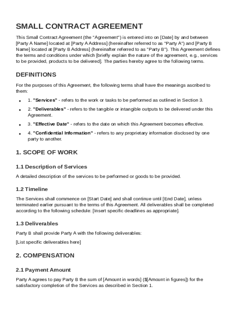 Structuring payments is a critical aspect of small contracts. Clarity in payment schedules and amounts helps avoid conflicts later.