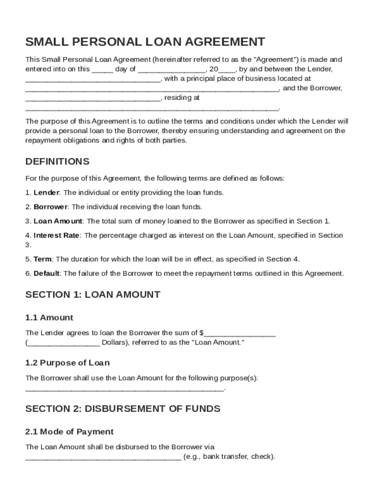 A Small Personal Loan Contract Template is a legal document outlining the terms and conditions of a personal loan between a lender and a borrower.