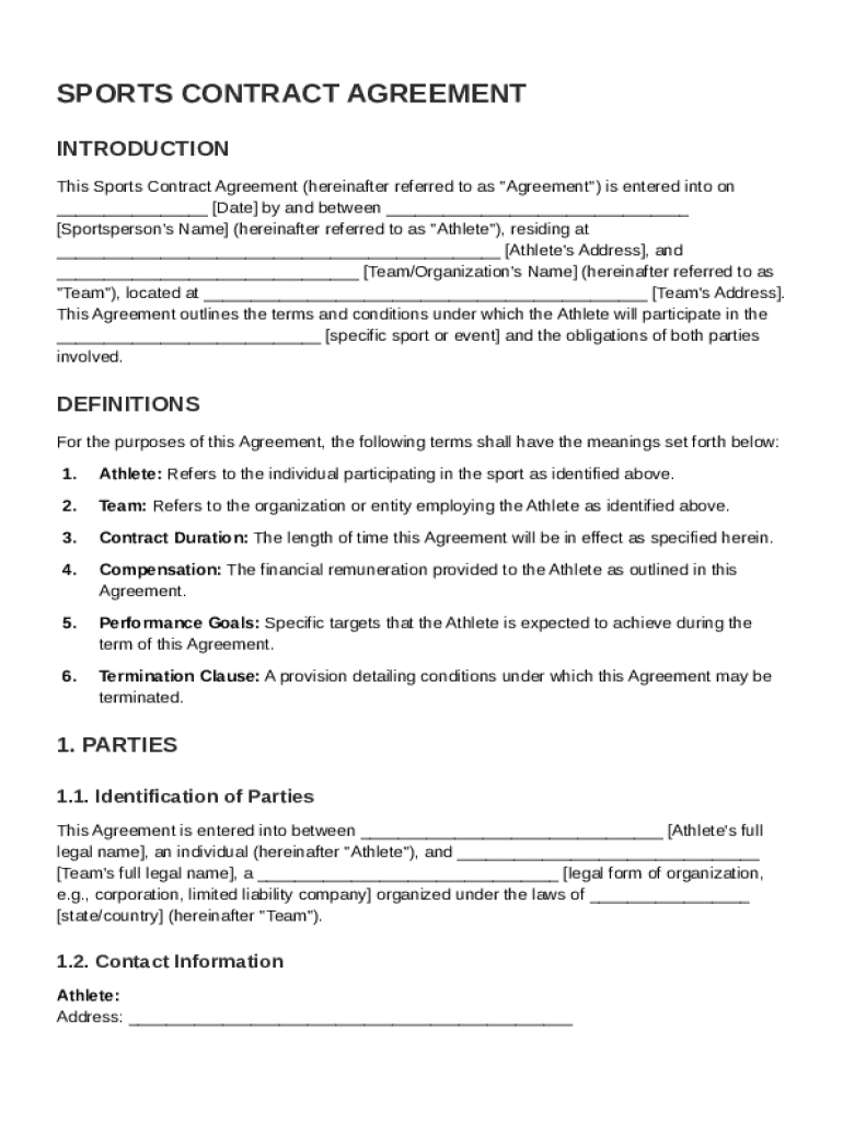 Filling out a sports contract template requires attention to detail and adherence to the form's structure. By following a systematic process, you can ensure accurate and relevant information is inputted into the contract.
