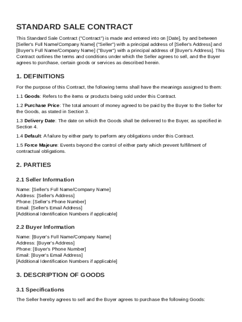 A Standard Sale Contract Template is a legally binding document outlining the terms of sale between a buyer and a seller.