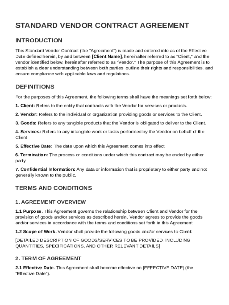 Comprehensive Guide to the Standard Vendor Contract Template Form