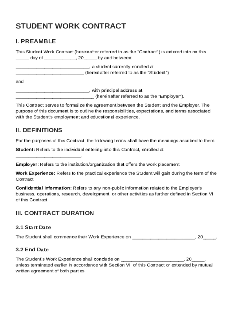 A student work contract serves as a binding agreement that establishes a clear framework for engagement, delineating expectations and obligations of both parties.