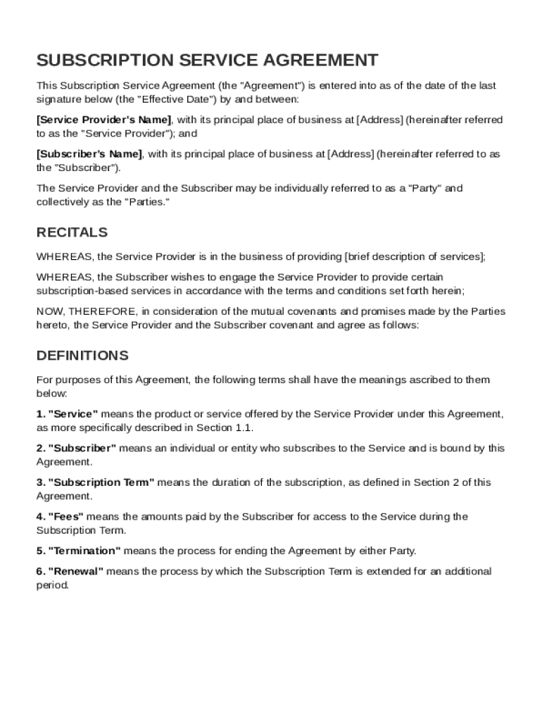 Comprehensive guide to Subscription Service Contract Template form