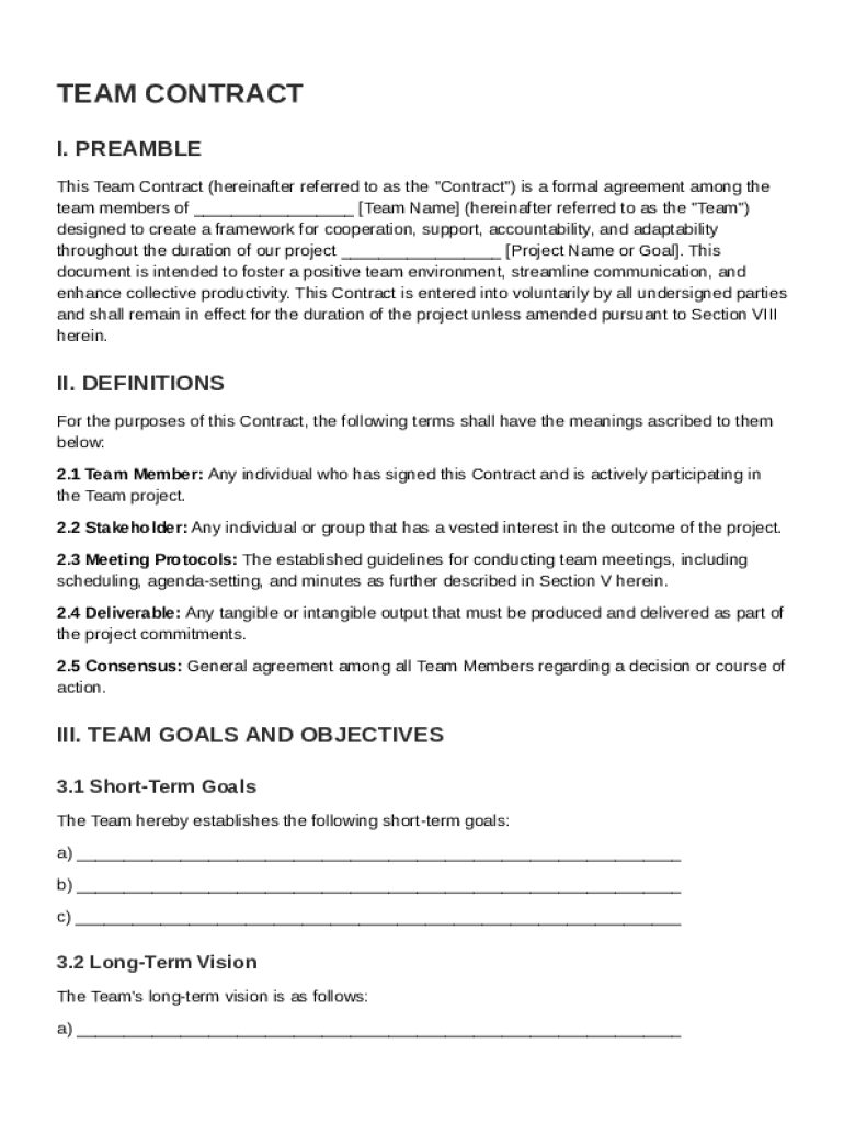 A Team Team Contract Template is a structured document that outlines the agreements, roles, and responsibilities of team members to ensure effective collaboration.