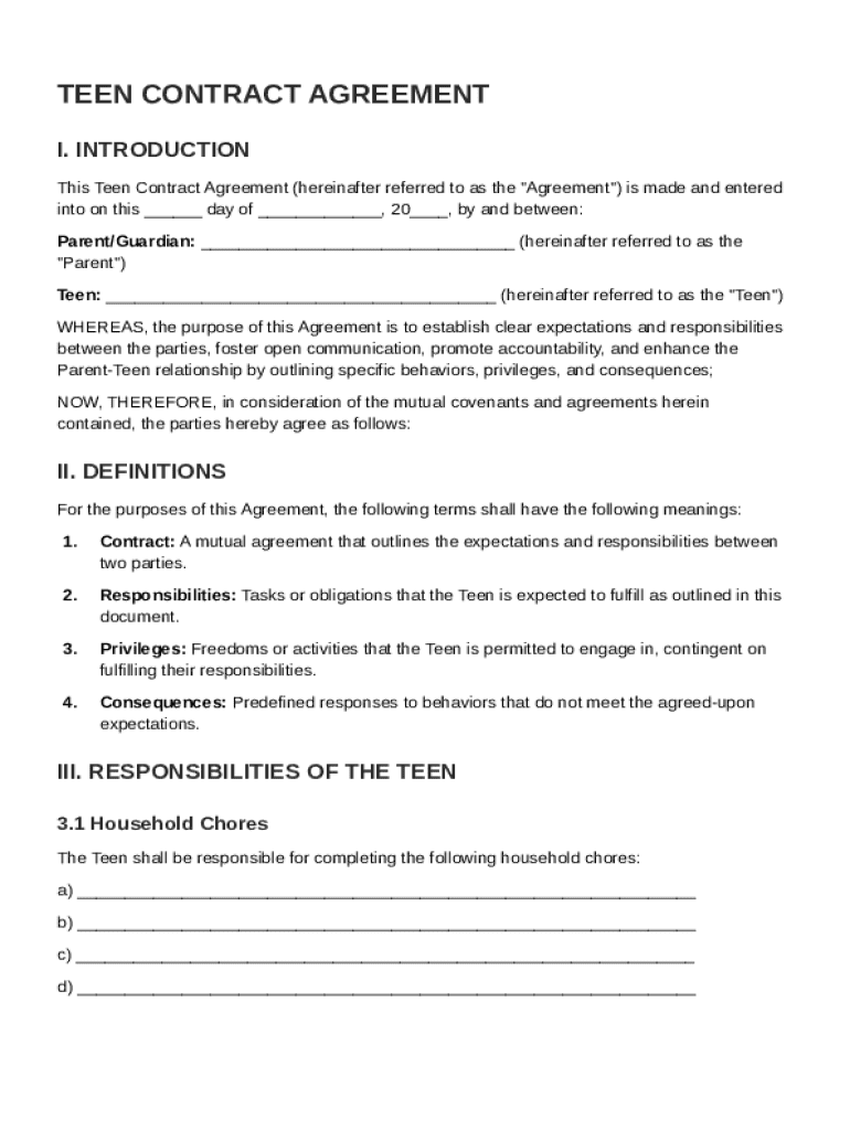 Teen Contract Template Guide on pdfFiller