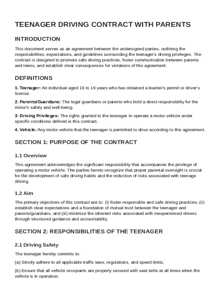 A Comprehensive Guide to the Teenager Driving with Parents Contract Template