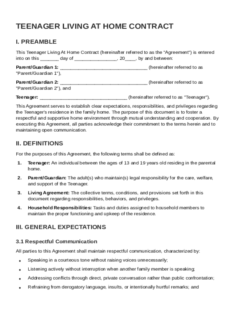 A well-structured Teenager Living At Home Contract must include several essential components that foster understanding and respect among family members.
