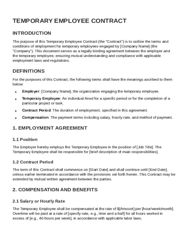 Drafting a temporary employee contract involves careful consideration and clarity. A well-structured contract is essential for ensuring that all parties understand their commitments.