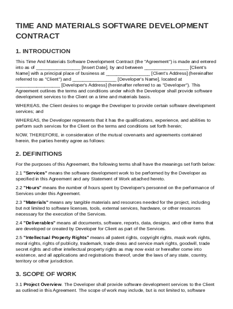 Comprehensive Guide to Time And Materials Software Development Contract Form