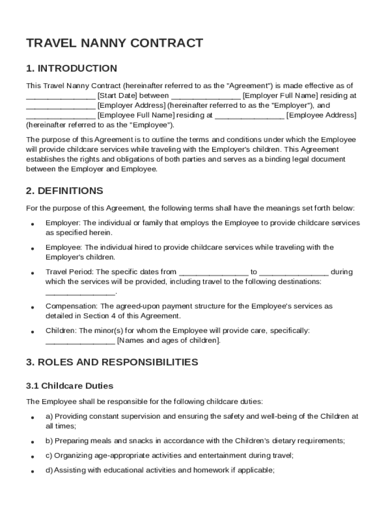 This section provides essential insights into what a Travel Nanny Contract Template entails and why it is vital for both parties involved.