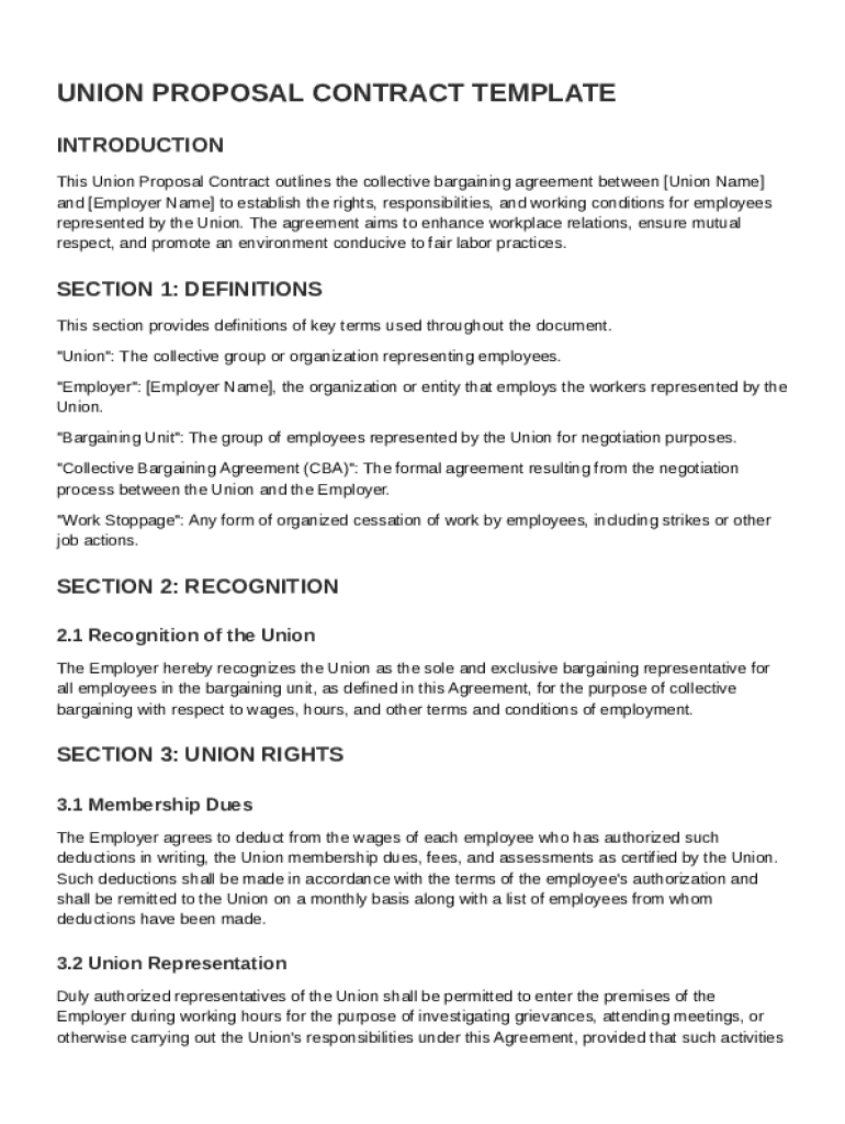 Understanding the terminology used in a Union Proposal Contract is vital for clarity. Key definitions help all parties involved know their rights and responsibilities.