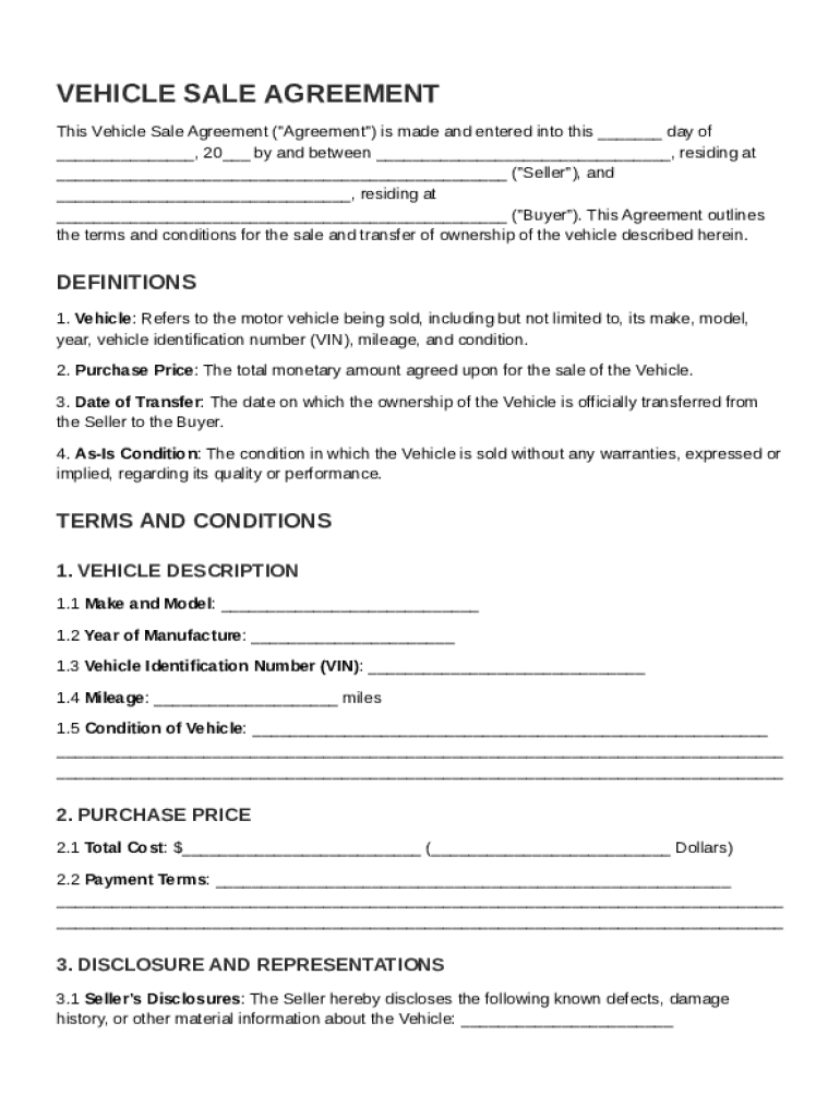 What is Vehicle Of Sale Contract Template