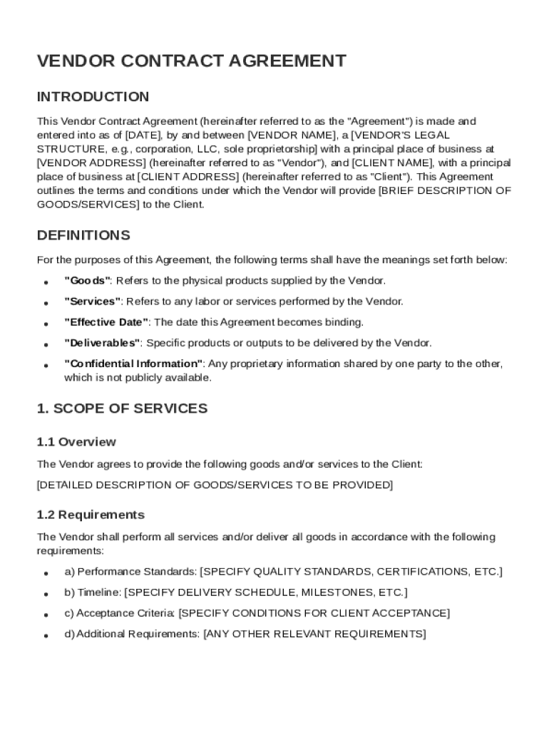 Gain a comprehensive understanding of the vendor contract template, including its purpose and various elements involved.