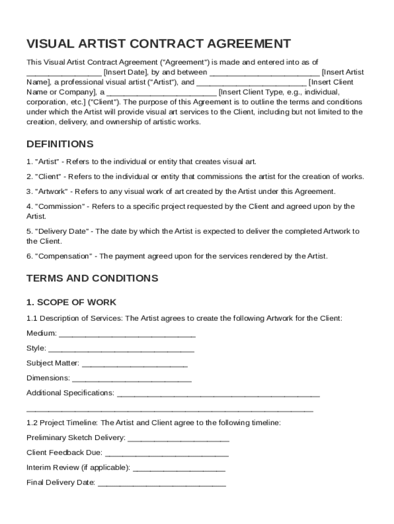A Visual Artist Contract Template is a legal document that outlines the agreement between a visual artist and a client regarding the creation and use of artworks.