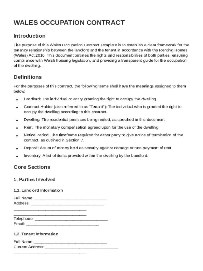 Understanding the core components of the Wales Occupation Contract is essential for both landlords and tenants. Each section of the contract must be filled out accurately to establish the terms of the tenancy.