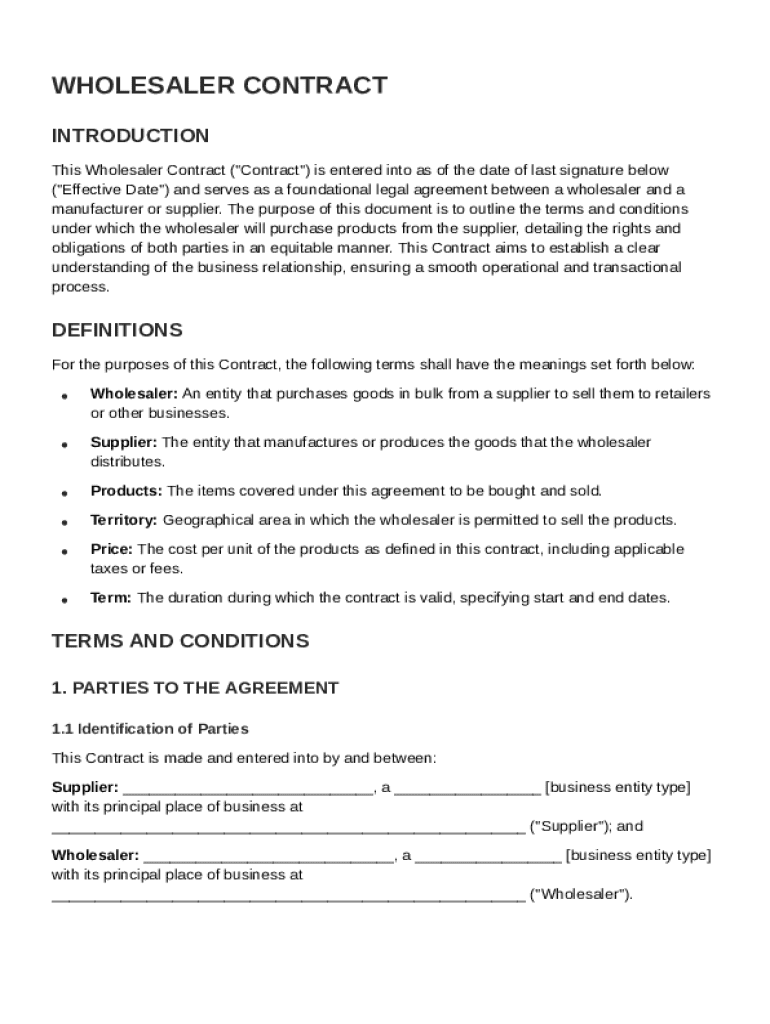 Comprehensive Guide to the Wholesaler Contract Template