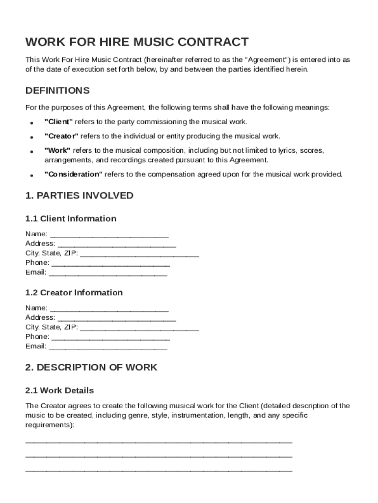 How to Create a Work For Hire Music Contract Template Form