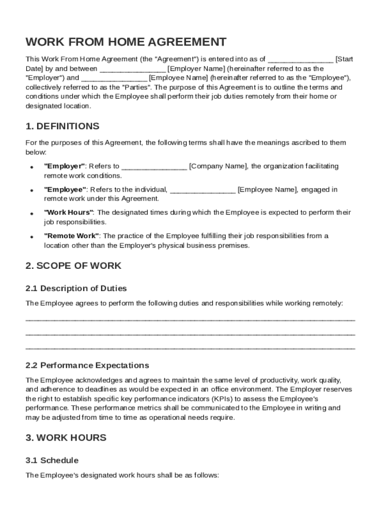 A Work From Home Contract Template is a formal agreement outlining the terms and conditions for an employee to perform their job remotely.