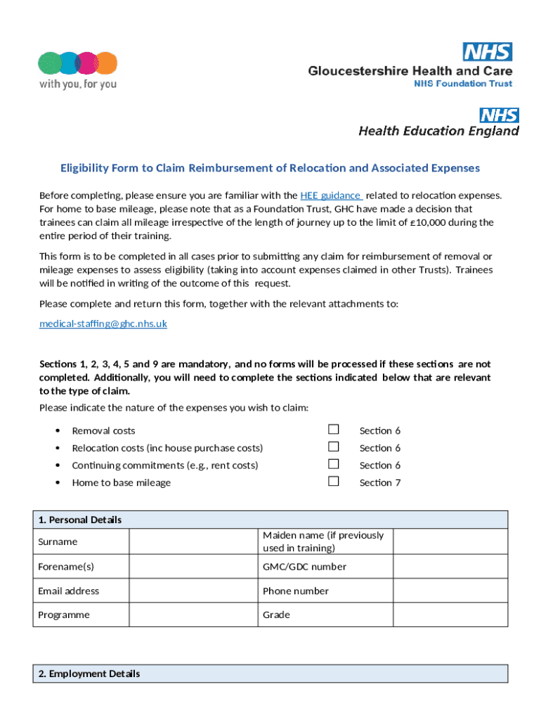 What is Eligibility to Claim Reimbursement of Relocation and Associated Expenses - peninsuladeanery nhs Form?