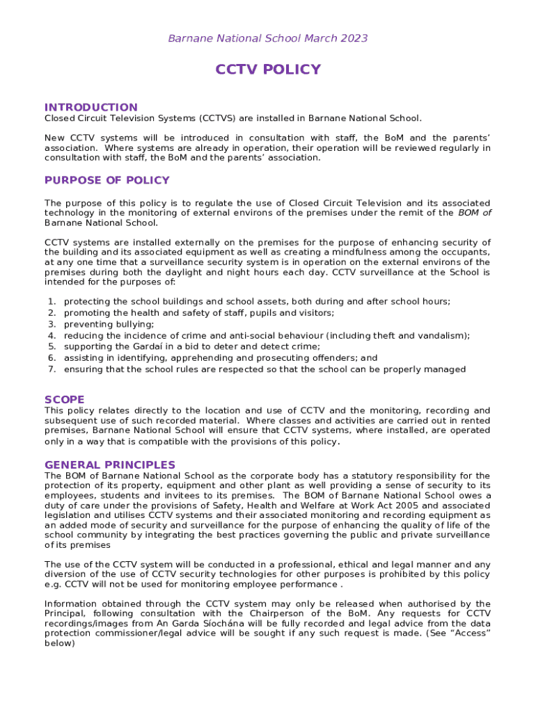 Template Barnane National School Cctv Policy instructions