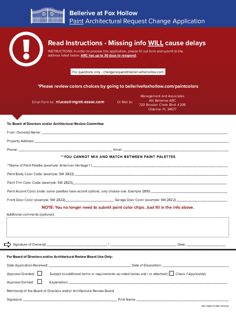 Get the free Bellerive at Fox Hollow Paint Architectural Change Request